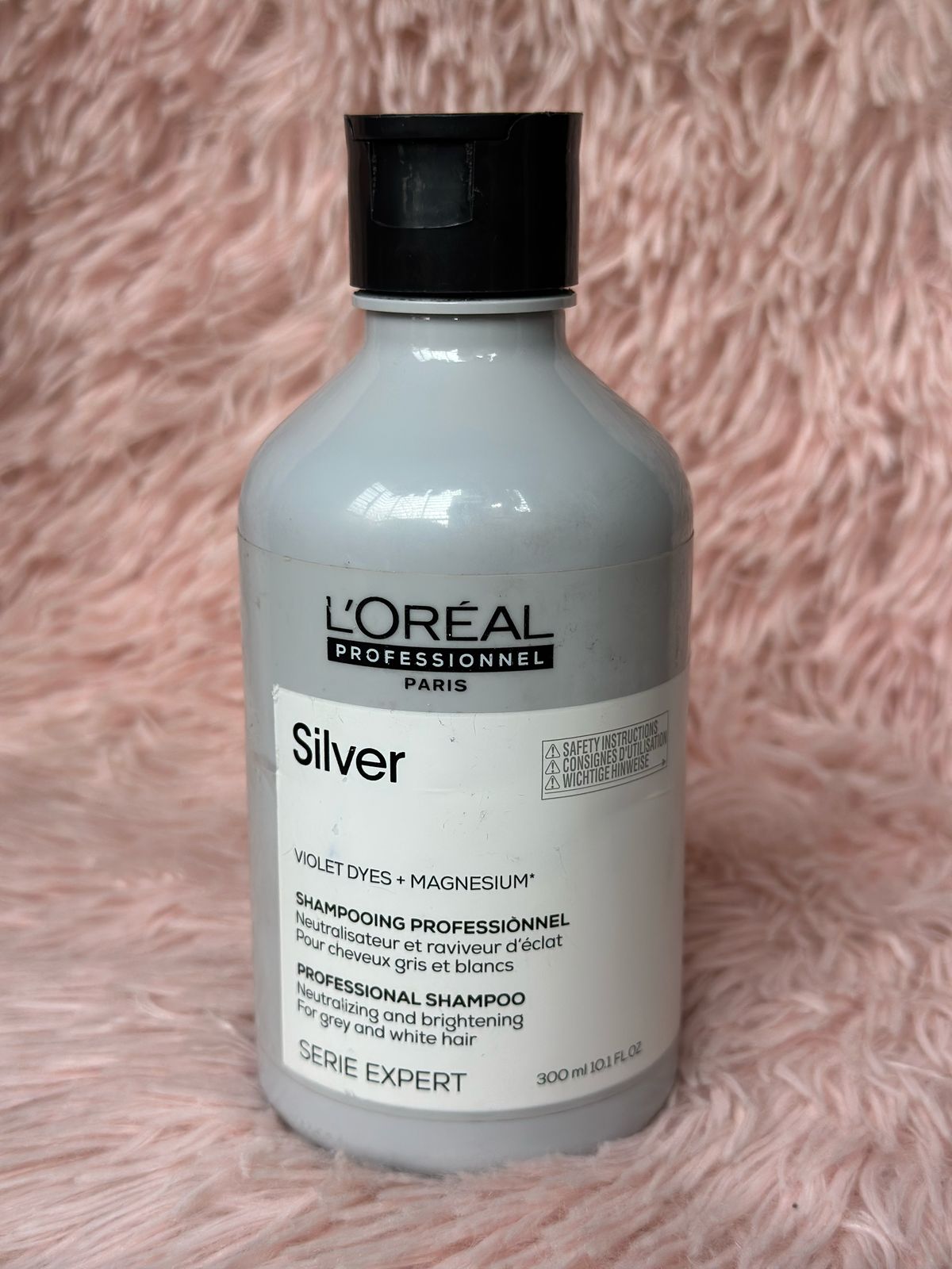 Neutralize unwanted yellow tones in gray, white, or blonde hair with the L’Oréal Professionnel Serie Expert Silver Neutralizing Shampoo. Infused with violet dyes and magnesium, this professional shampoo revives dull hair, enhancing brightness and cool tones for a vibrant, salon-fresh look. Ideal for maintaining color-treated or naturally gray hair, it gently cleanses while depositing pigments to combat brassiness and yellowing. Use weekly or as needed: apply to wet hair, lather, leave on for 2-3 minutes, and rinse thoroughly. Perfect for those seeking to brighten and protect their hair’s natural or colored shade. Experience the expertise of L’Oréal Professionnel for healthier, more radiant locks.